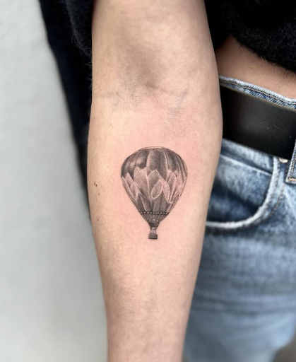 - Le vent des montgolfières : porté par l’air, le ballon s’élève lentement, comme une invitation à prendre de la hauteur et à voir le monde autrement. En tatouage, une montgolfière fineline capture l’idée de voyage intérieur autant qu’extérieur, symbole d’évasion et de légèreté.