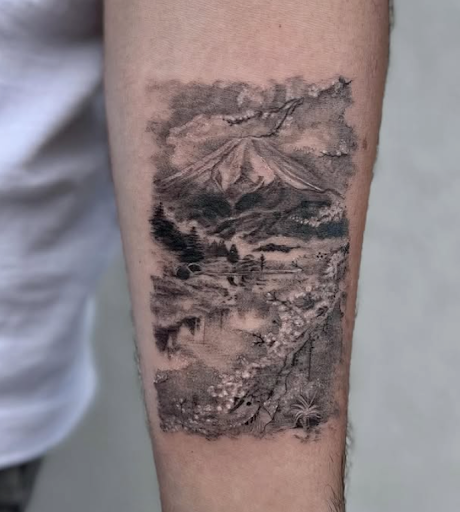 - Les paysages terrestres : montagnes, forêts et champs se prêtent parfaitement au microréalisme. Gravés à petite échelle, ces panoramas racontent la grandeur de la nature tout en tenant dans quelques centimètres de peau.